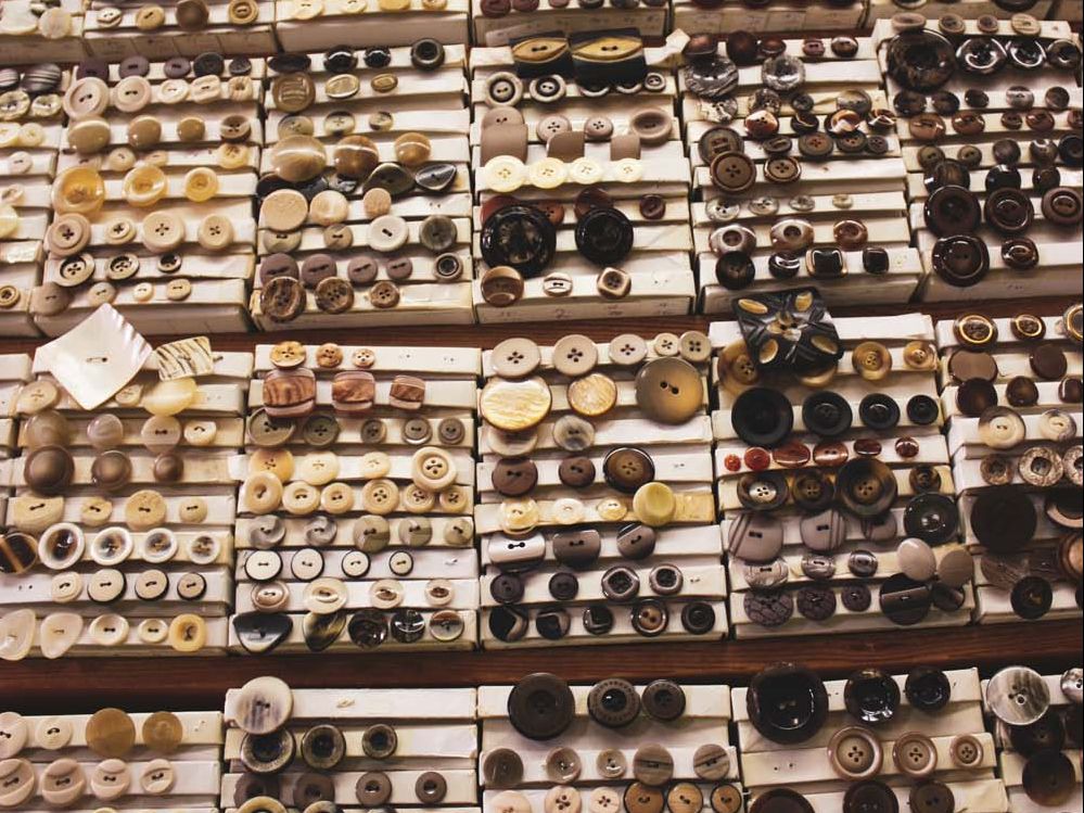 Seit jeher eines unserer ausgeprägten Spezialgebiete: Knöpfe. Bei uns finden Sie alles, was das (Hobby-)Schneiderherz begehrt - und noch ein bisschen mehr. Entdecken Sie unsere beeindruckende Auswahl unterschiedlicher Knopf-Varianten und lassen Sie sich für Ihr nächsten Nähprojekt inspirieren!